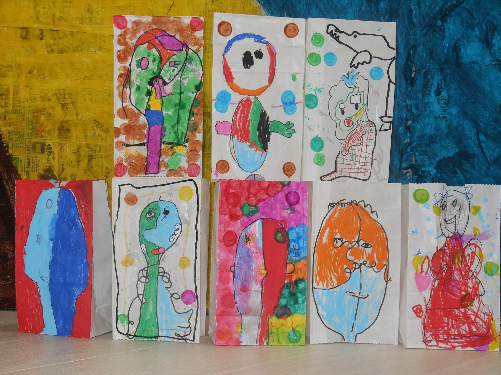 We made these as puppets...another great idea would be huge bags to fit over the heads¬! Next time!